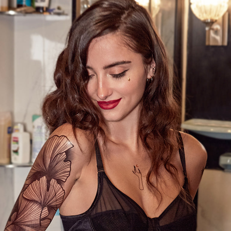 Como aplicar as tatuagens? O princípio é o mesmo de uma tatuagem temporária! Aplique a tatuagem temporária na área desejada do corpo e dê leves batidinhas com uma esponja ou pano úmido.