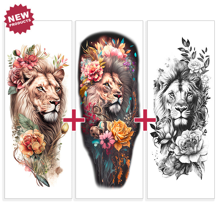 Tatuagem temporária "Conjunto de 3 mangas de leão floral"